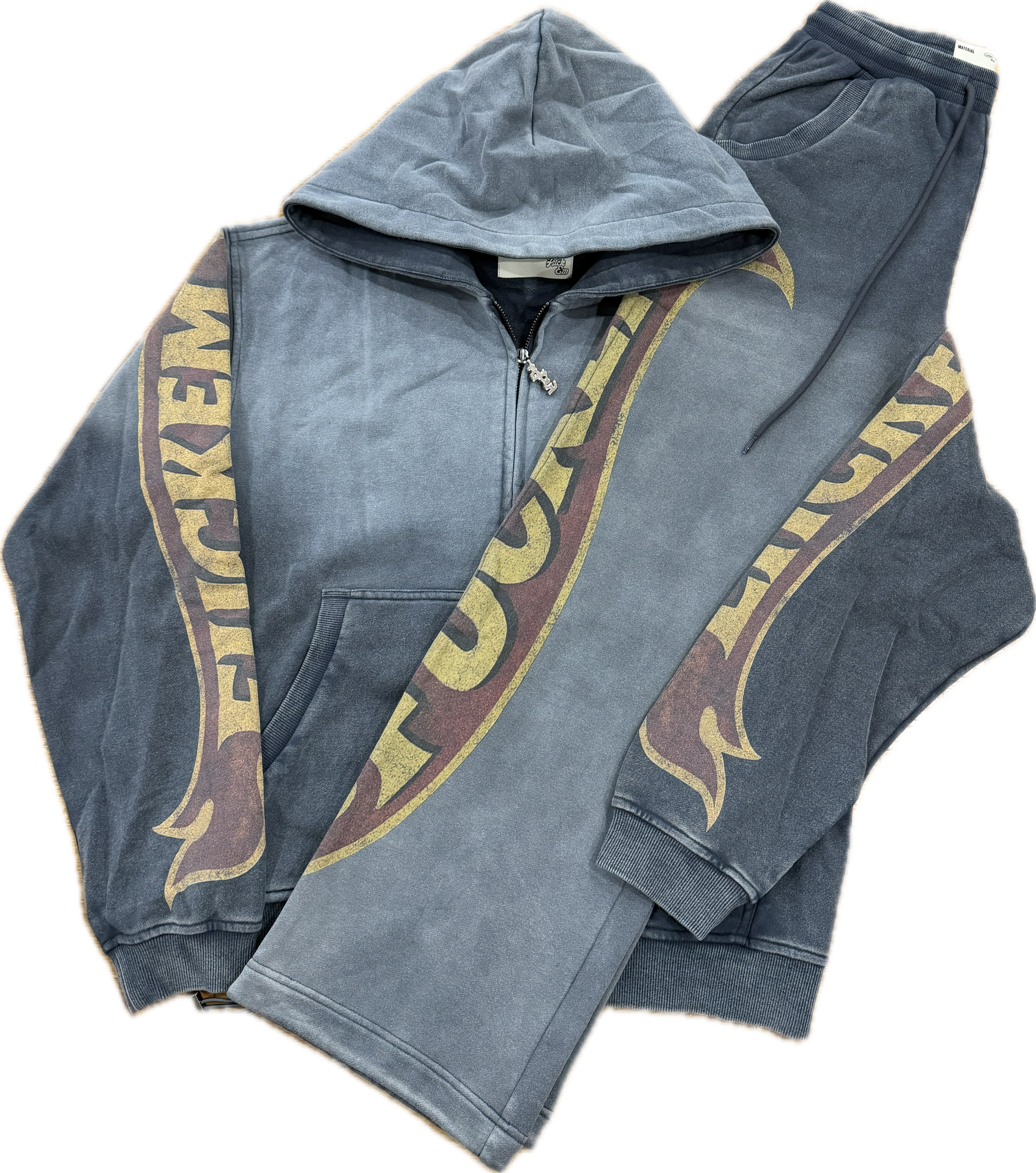 This 100% Cotton Sweatsuit features 4 different hidden zipper pockets, in addition to the 6 regular pockets. The sweatsuit also features adjustable ankle cuffs to keep them fitting perfect at all times. Adjustability doesn’t end there either with adjustable waistband as well. The double zipper has been upgraded to a ykk zipper with custom zipper pulls sporting our original logo. And lastly a full seam to seam dtg print of our signature flames logo